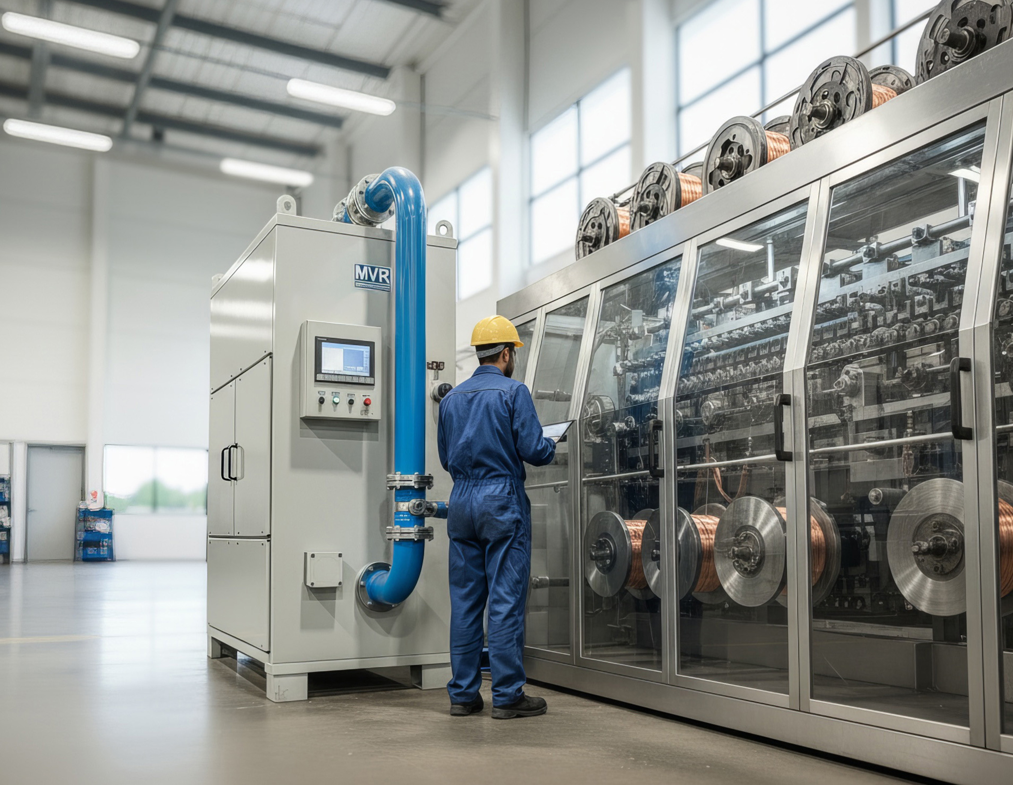 在铜线生产中使用拉丝乳液会产生大量污染废水。我们展示了现代 MVR 蒸发器技术如何高效处理这些废水,回收高达 98% 的水,从而降低处理成本并带来生态效益。